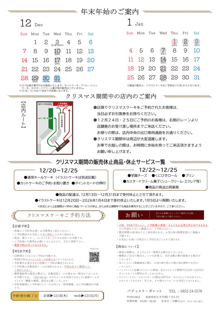 ・パンフレットに記載のクリスマス商品、及びクリスマス期間中(12/20〜12/25)のポイントカードの押印はおこなっておりません。また、クリスマスケーキはこっころカード特典の対象外となります。何卒ご了承下さい。