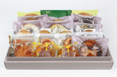 フランス菓子を基本に、温かみのある風合いを大切にして焼き上げたクッキーやフィナンシェなど、おすすめの焼菓子を詰めたギフトセット。